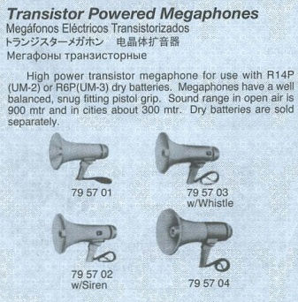 795701 TRANSISTOR POWERED MEGAPHONES; 6W